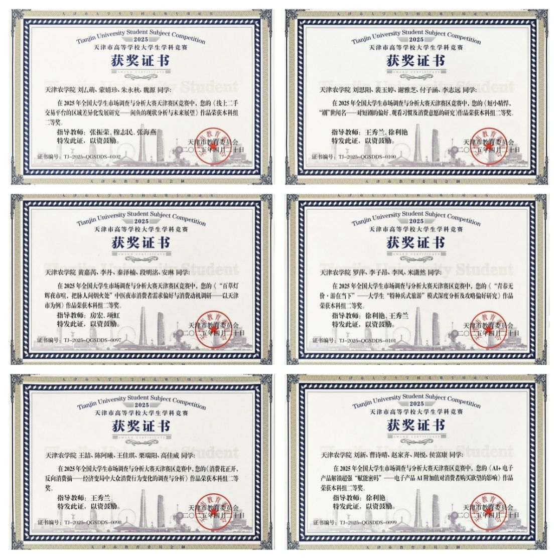 我校已连续四年参加全国大学生市场调查与分析大赛,累计获得国家三等奖3项,天津市一等奖10项,天津市二等奖14项,天津市三等奖16项。通过竞赛,提高了学生的组织、策划、调查实施和数据处理与分析等专业实战能力,培养了学生的社会责任感、服务意识、市场敏锐度和团队协作精神。
