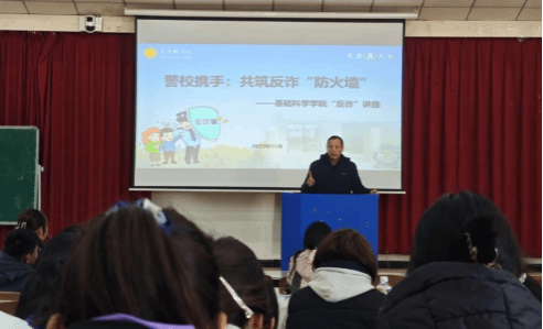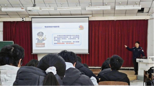 讲座由保卫工作部白玉斌老师主持。他在开场致辞中指出,当前电信网络诈骗已成为影响校园安全稳定的突出风险,希望同学们以此次讲座为契机,切实提高识诈、防诈、反诈能力,牢牢守住个人财产安全底线。