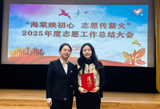 近日,周恩来邓颖超纪念馆召开“海棠映初心 志愿传薪火”2025年度志愿工作总结大会。我院应用化学系青年教师、2023级辅导员赵杨同志,凭借其在年度志愿服务工作中的突出表现,被授予该馆“优秀志愿者”荣誉称号。此项荣誉既是对赵杨同志个人奉献的认可,也彰显了我院师生服务社会、传承红色文化的责任担当。