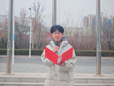升旗仪式毕,2024级学生白润伟以《冬启新程,旗耀中华》为题发表演讲。他从冬至“阴极之至,阳气始生”这一自然节律中汲取精神启示,鼓励同学们不畏困难挑战,坚信每一份扎实的努力终将迎来成长与蜕变,并呼吁大家将“小我”融入“大我”,把个人奋斗汇入民族复兴的时代征程。