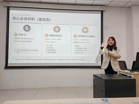 会议伊始,潘虹教授从新质生产力和高等教育高质量发展的角度阐释了为何教学创新,结合考夫曼和贝格托提出的4C创造阐释了何为教学创新。第五届全国高校教师教学创新大赛省赛二等奖获得者徐晓萍副教授作专题分享,她结合自身参赛经验分享如何教学创新,围绕教创赛赛事解读、备赛全流程、评分标准解读等方面内容开展系统讲授。在互动交流环节,与会教师从数学、化学两个不同学科角度如何备赛开展积极讨论,现场交流氛围浓厚。